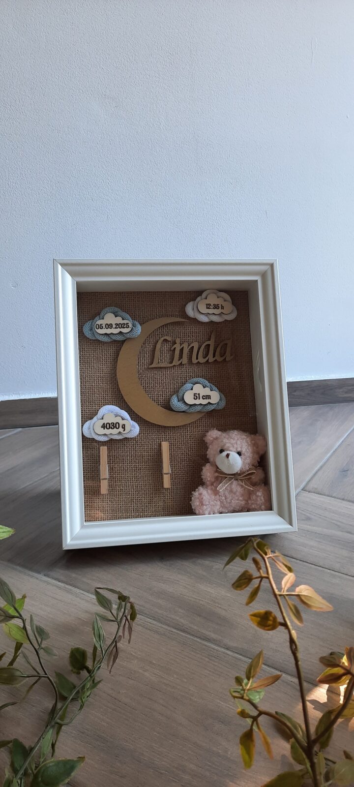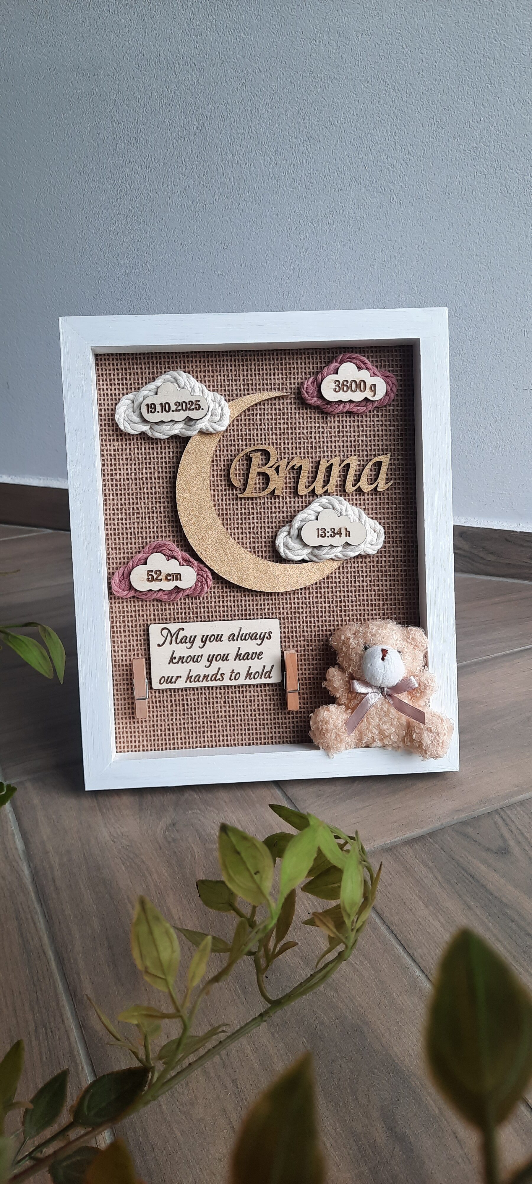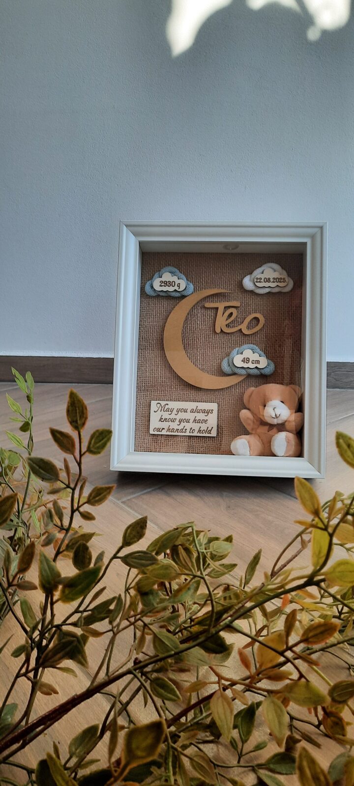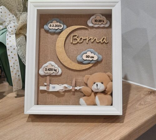 Okvir uspomena savršen je poklon za rođenje djeteta. Sa svim podacima tog najljepšeg dana svake mame bit će trajna uspomena koja će potaknuti brojne teme za razgovor.